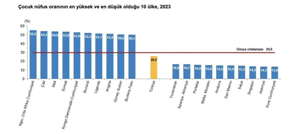 2023 itibarıyla Türkiye, AB üyesi ülkeler arasında en yüksek çocuk ve genç nüfusa sahip ülke olarak kayıtlara geçti.