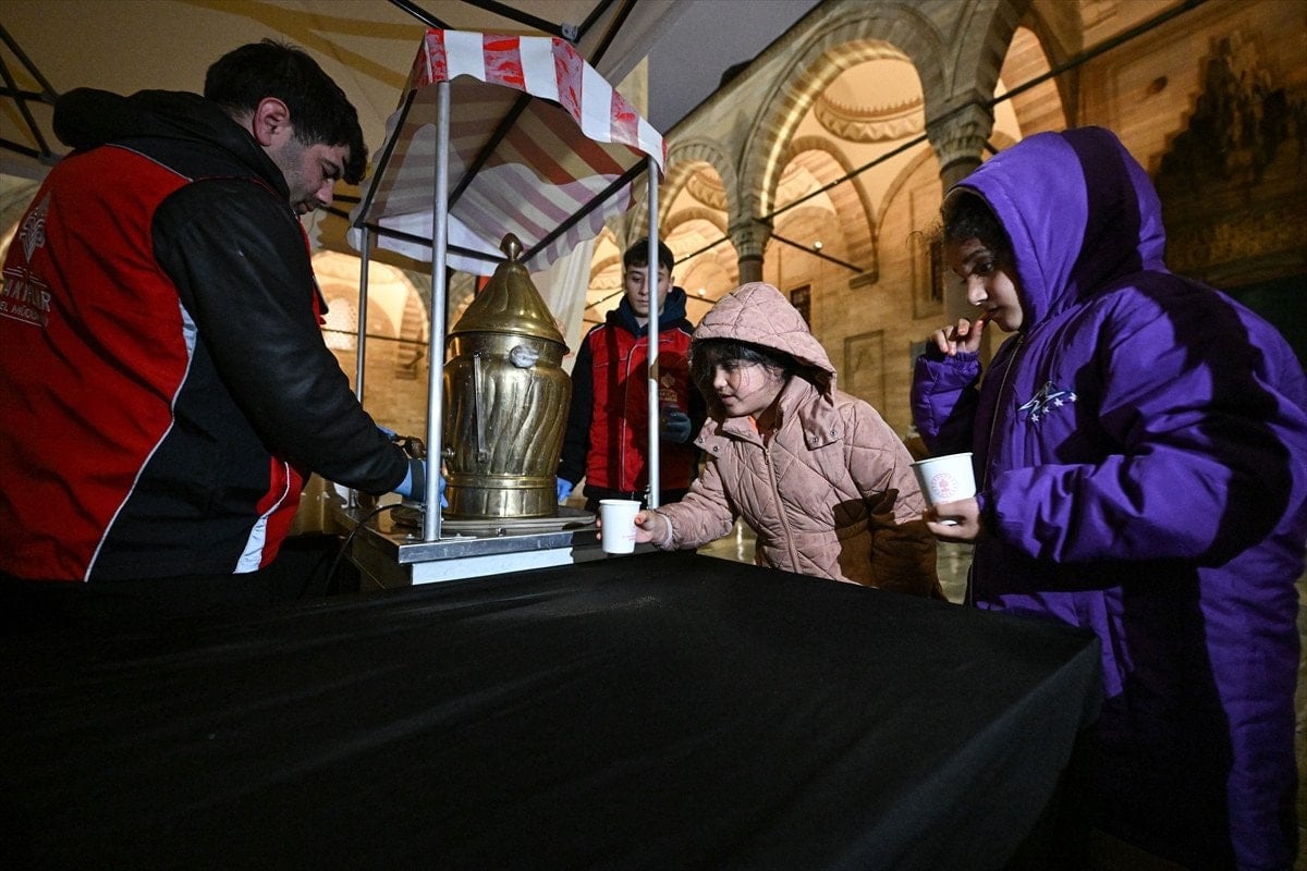 İslam aleminde mübarek üç ayların başlangıcını müjdeleyen Regaip Kandili, Sultanahmet Camii'nde düzenlenen programla karşılandı. Akşam namazının ardından camide toplanan kişiler Kur'an-ı Kerim okunmasıyla başlayan programda, ilahiler eşliğinde dualar etti. Cami avlusunda Vakıflar Genel Müdürlüğü ekipleri tarafından kurulan stantta misafirlere boza ikram edildi.