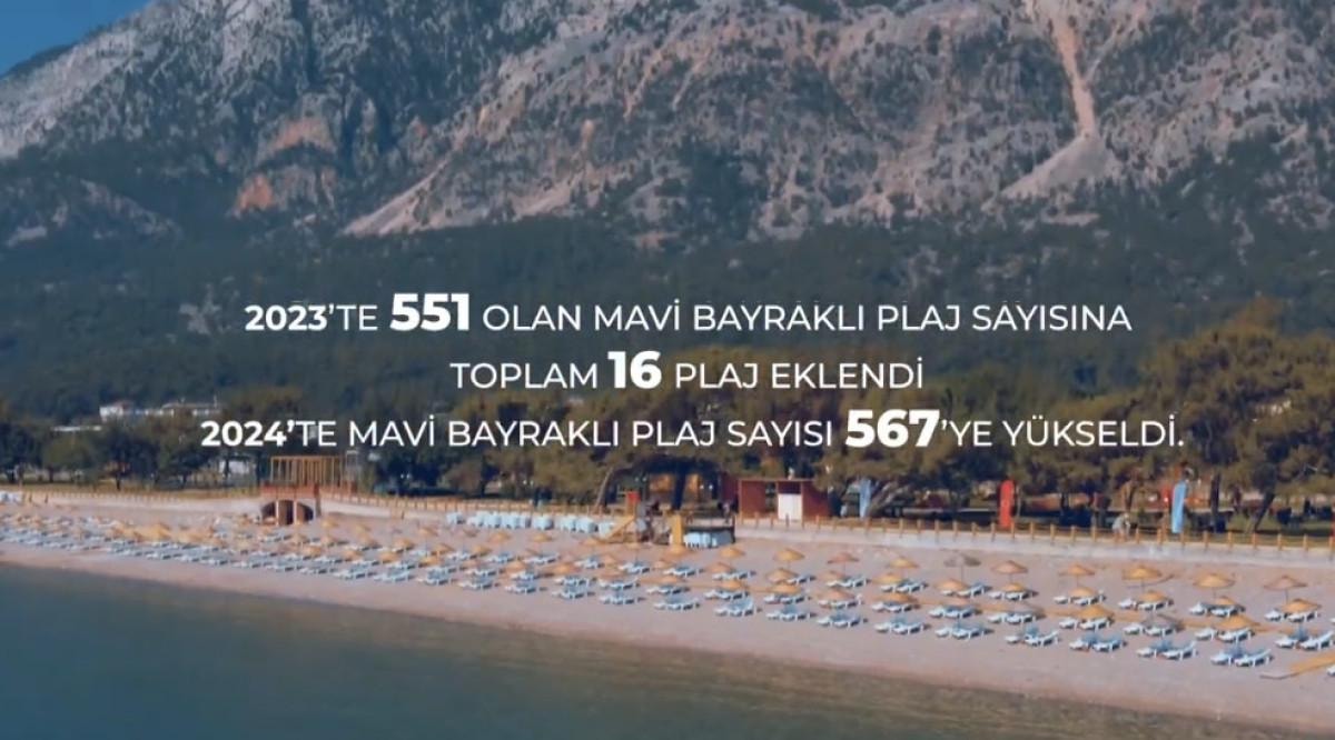 Mavi Bayrak plajlarımıza çok yakışıyor. Ülkemizden bu yıl 567 plaj, 27 marina, 18 turizm teknesi ve 9 bireysel yat mavi bayrak almaya hak kazandı. En çok mavi bayrak sahibi ülkeler sıralamasında dünya 3'üncülüğümüzü bu sene de koruyoruz. Bu istikrarlı başarımız elbette gurur verici ama birincilik hedefimiz yolunda da kararlılıkla ilerliyoruz.