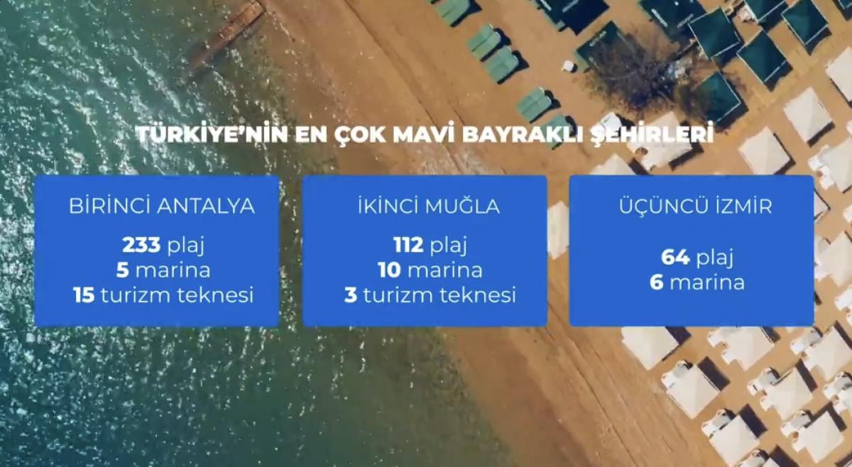 Öyle ki ülkemiz, mavi bayrakta dünya 3'üncü sırada yer alıyor.