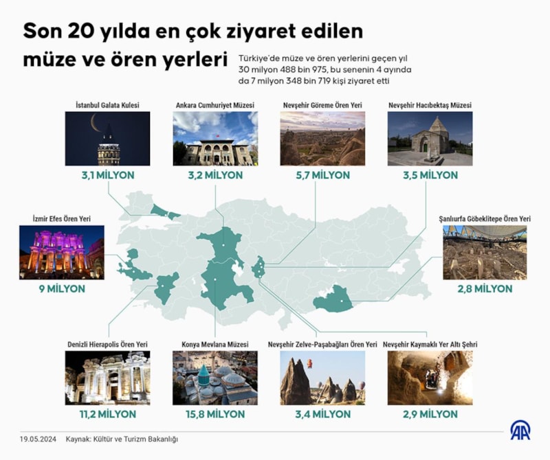 Kültür ve Turizm Bakanlığı'ndan alınan verilere göre son 20 yılda en çok ziyaret edilen müze ve ören yerleri belli oldu.