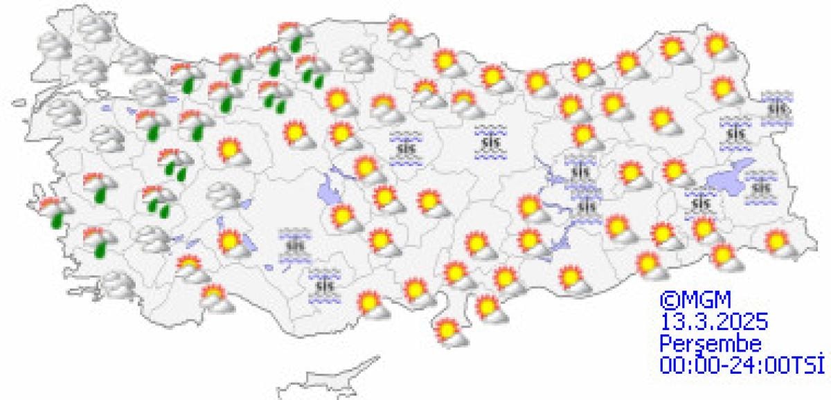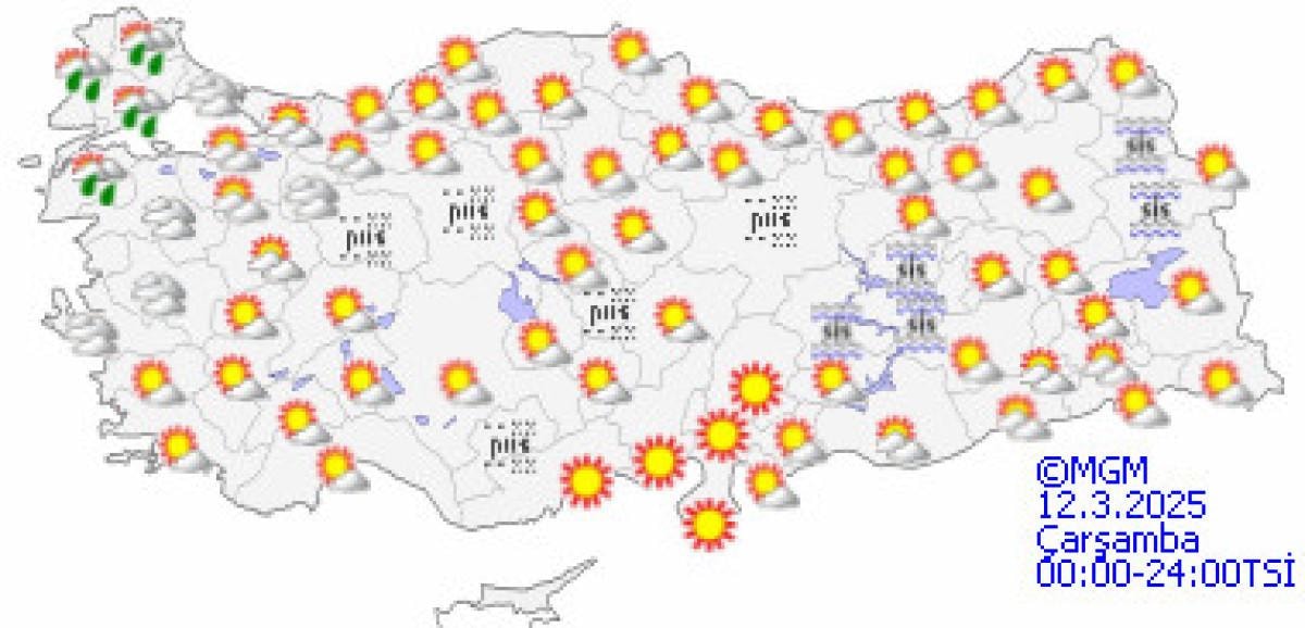 Öte yandan, 13 Mart Perşembe günü batı bölgelerde yer yer sağanak yağışlar etkili olacak.
