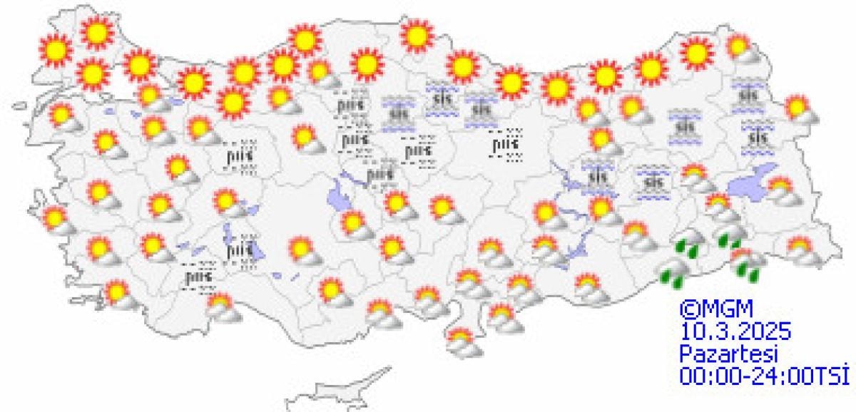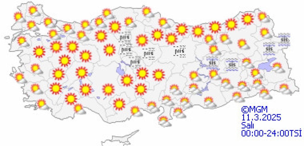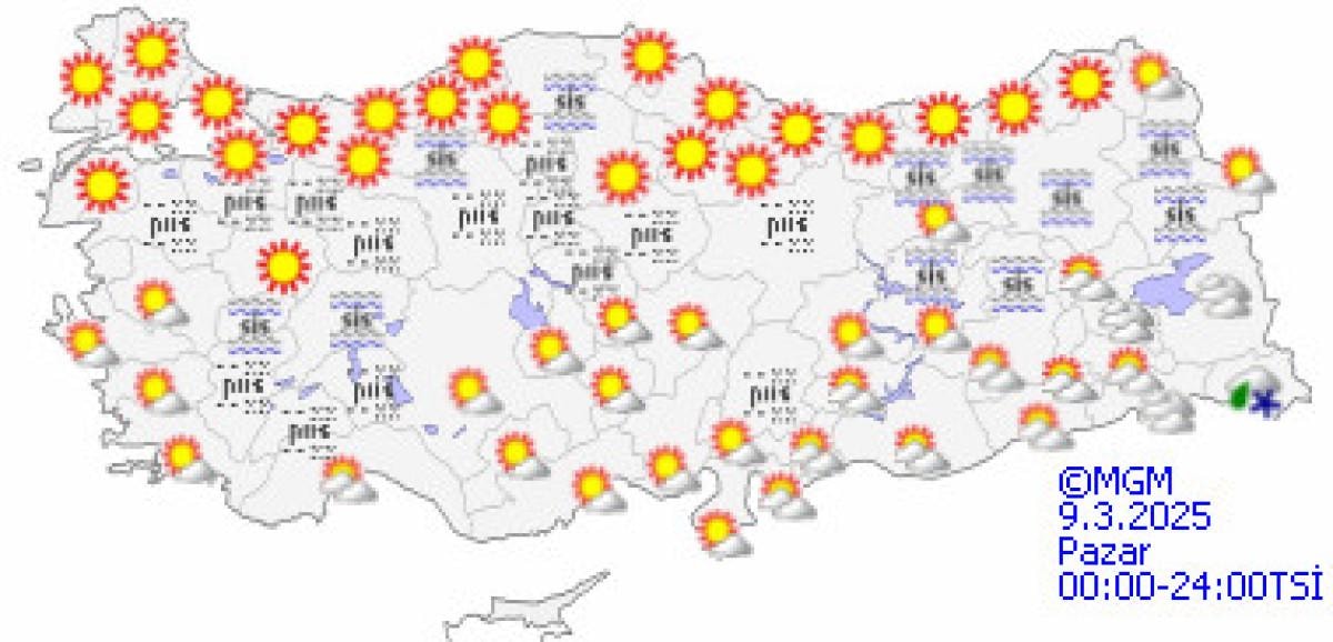 Sabah ve gece saatlerinde Doğu Anadolu'nun doğusunda buzlanma ve don, iç ve doğu kesimler ile Marmara ve Batı Karadeniz kıyılarında pus ve yer yer sisin etkili olması bekleniyor.