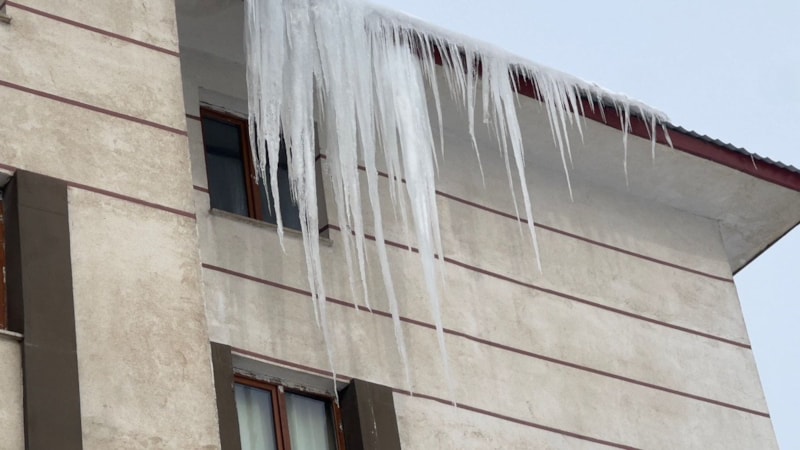 Araçların donduğu Yüksekova'da binaların çatılarında buz sarkıtları oluştu.