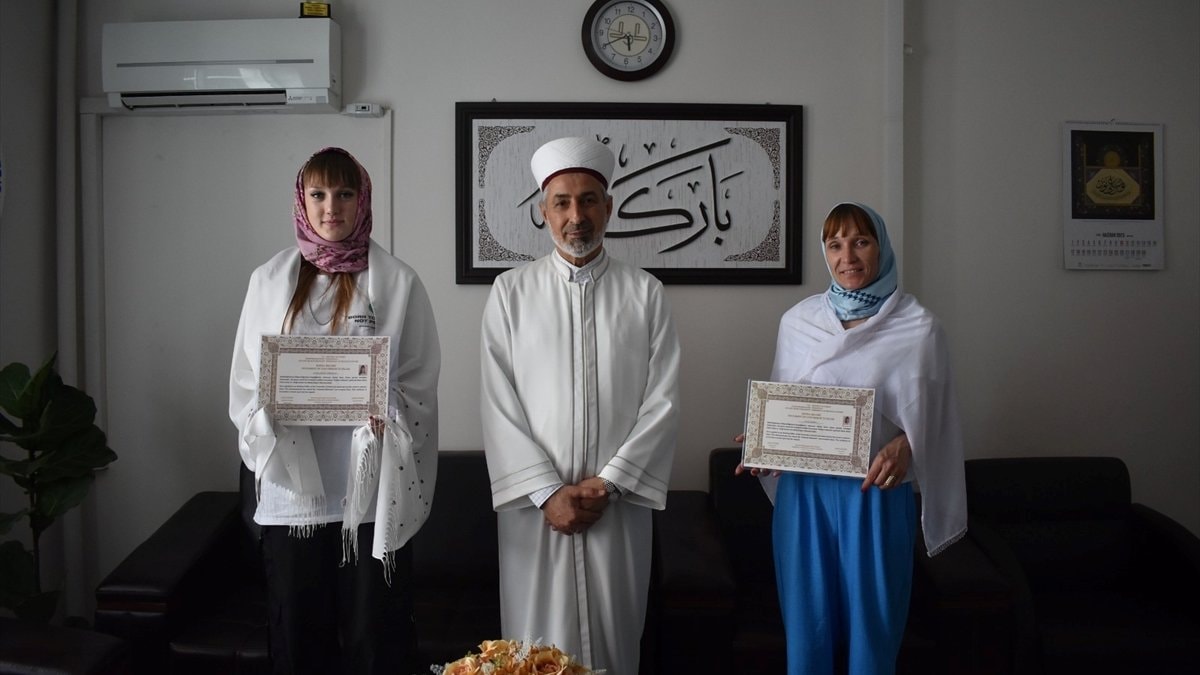 Merasimde konuşan anne Natalia ise 4 yıldır Türkiye'de yaşadıklarını dile getirerek, "Safiye arkadaşımıza teşekkür ediyoruz bize çok yardımcı oldu. Biz de İslam dinini araştırdık ve Müslüman olmaya karar verdik." diye konuştu.