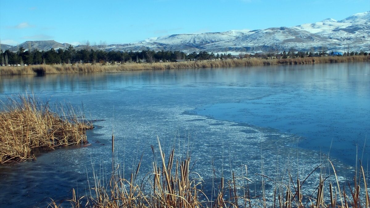 Sivas'ta yerli ve göçmen kuşlara ev sahipliği yapan Ulaş Gölü'nün yüzeyi, soğuk havanın etkisiyle kısmen buz tuttu.