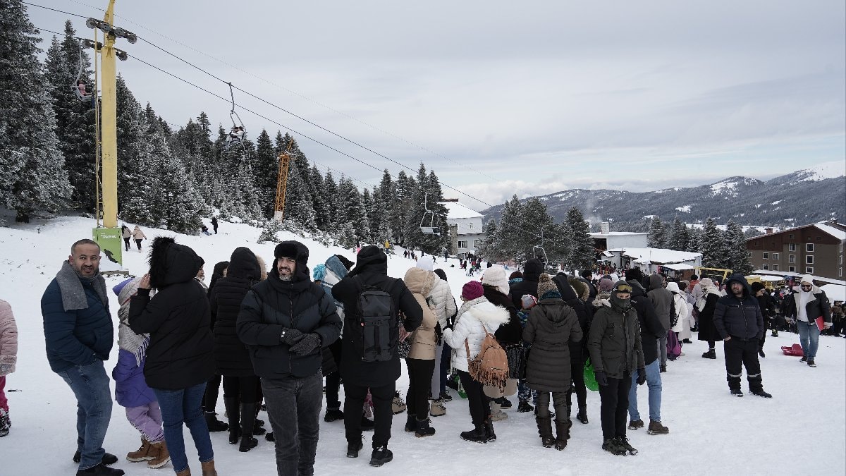 Bursa'da bulunan ve kış turizm merkezlerinin başında gelen Uludağ'da yarıyıl tatili ve hafta sonu yoğunluğu yaşandı.