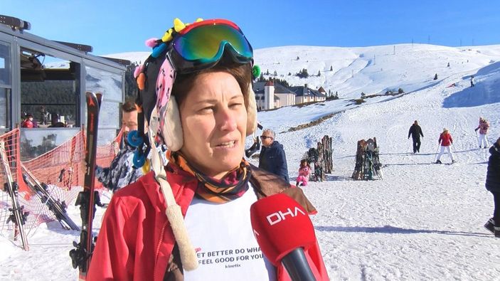 İstanbul'dan Uludağ'a geldiğini söyleyen Korhan İşgören, "Merak ettim ve ilk kez buraya geldim. Kayak yapmayı öğrenmeye çalışıyorum. Tek dileğimiz, yeni yıla mutlu girmek. Hava güneşli, gayet güzel. Buranın eğlencesini çıkarıyoruz." diye konuştu.