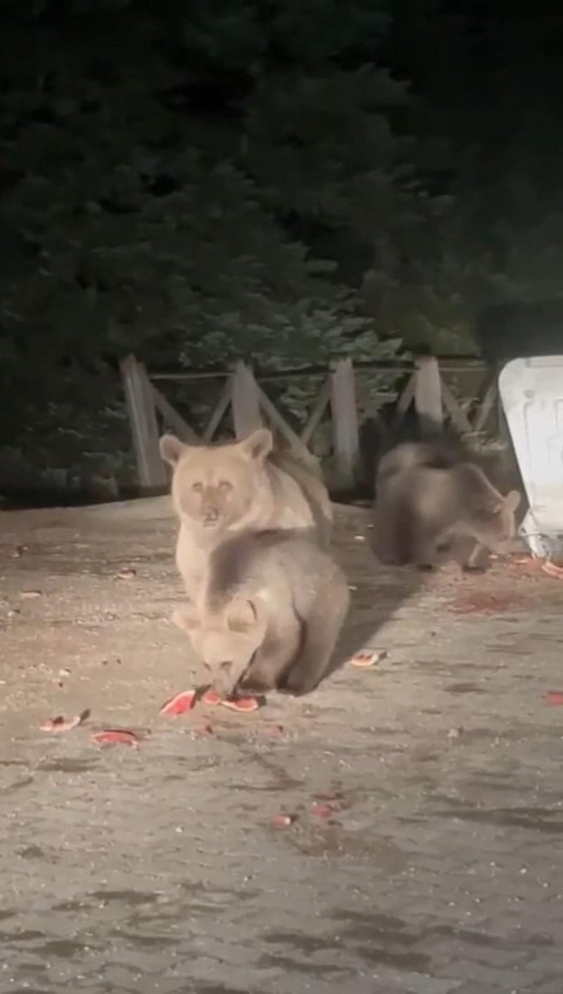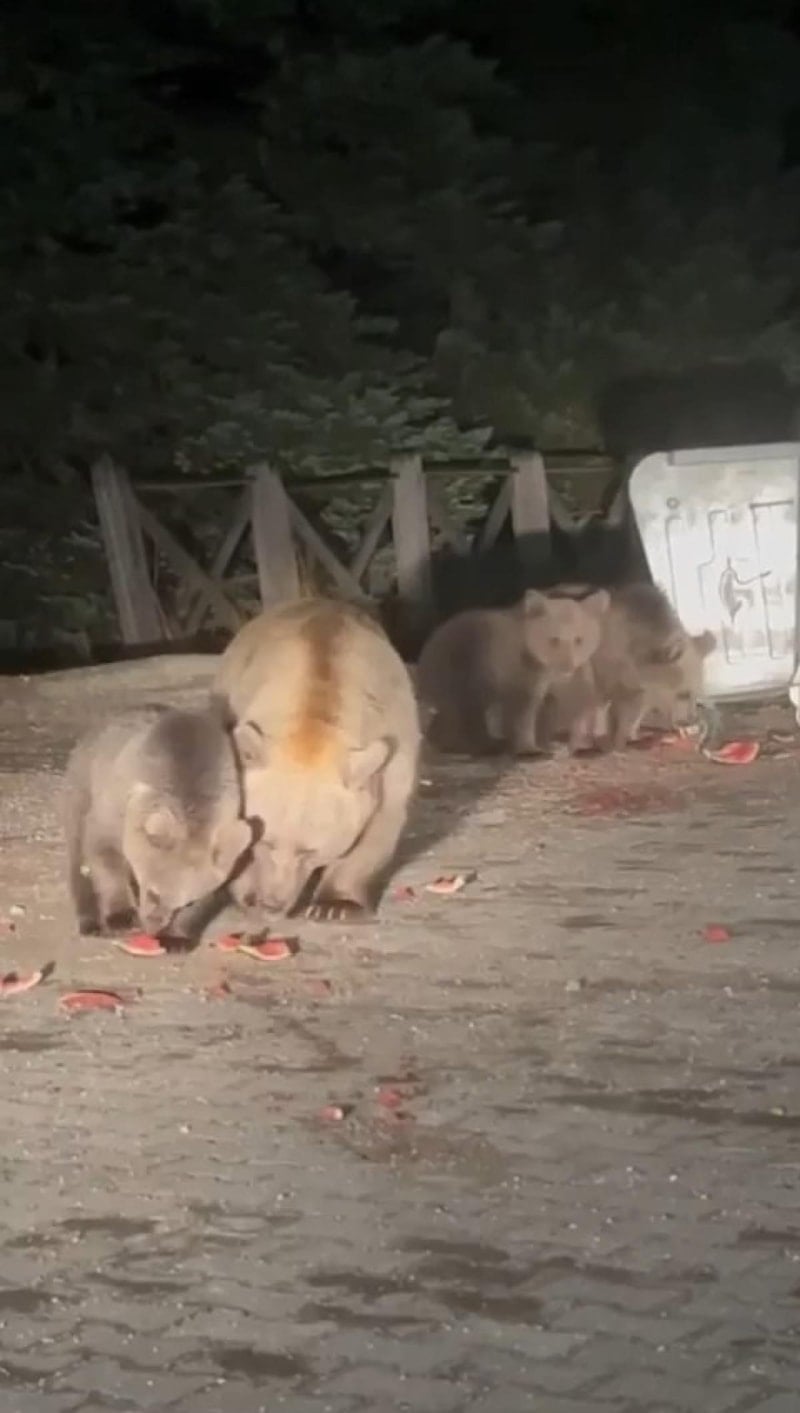 Ormanda aç kalan ayıların çöp tenekelerini karıştırma haberleri daha önce de yapılmıştı.