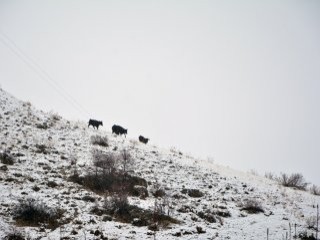 Bir süre burada bekleyen 24 Angus, bir anda Karadana bölgesindeki dağlık alana doğru kaçmaya başladı. Çiftçilerin şaşkın bakışları arasında hızla uzaklaşan hayvanlar, karla kaplı dağlık alanda gözden kayboldu.