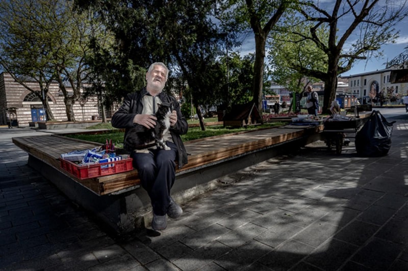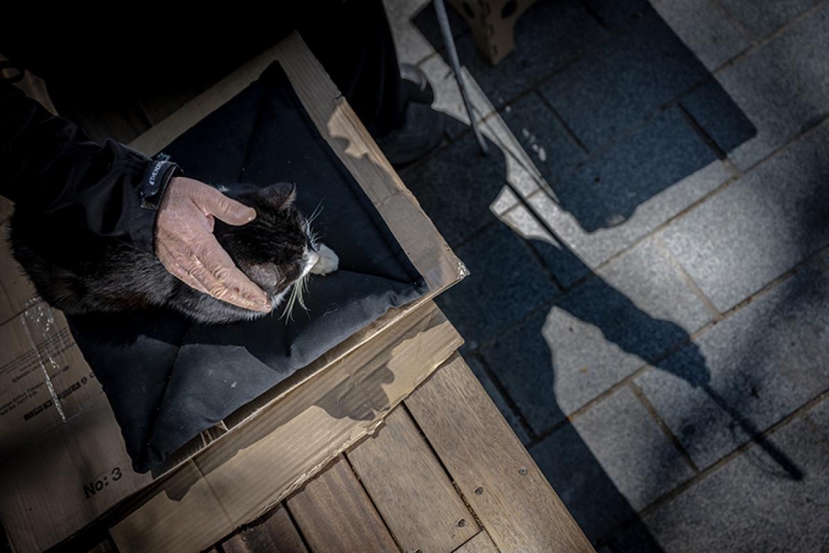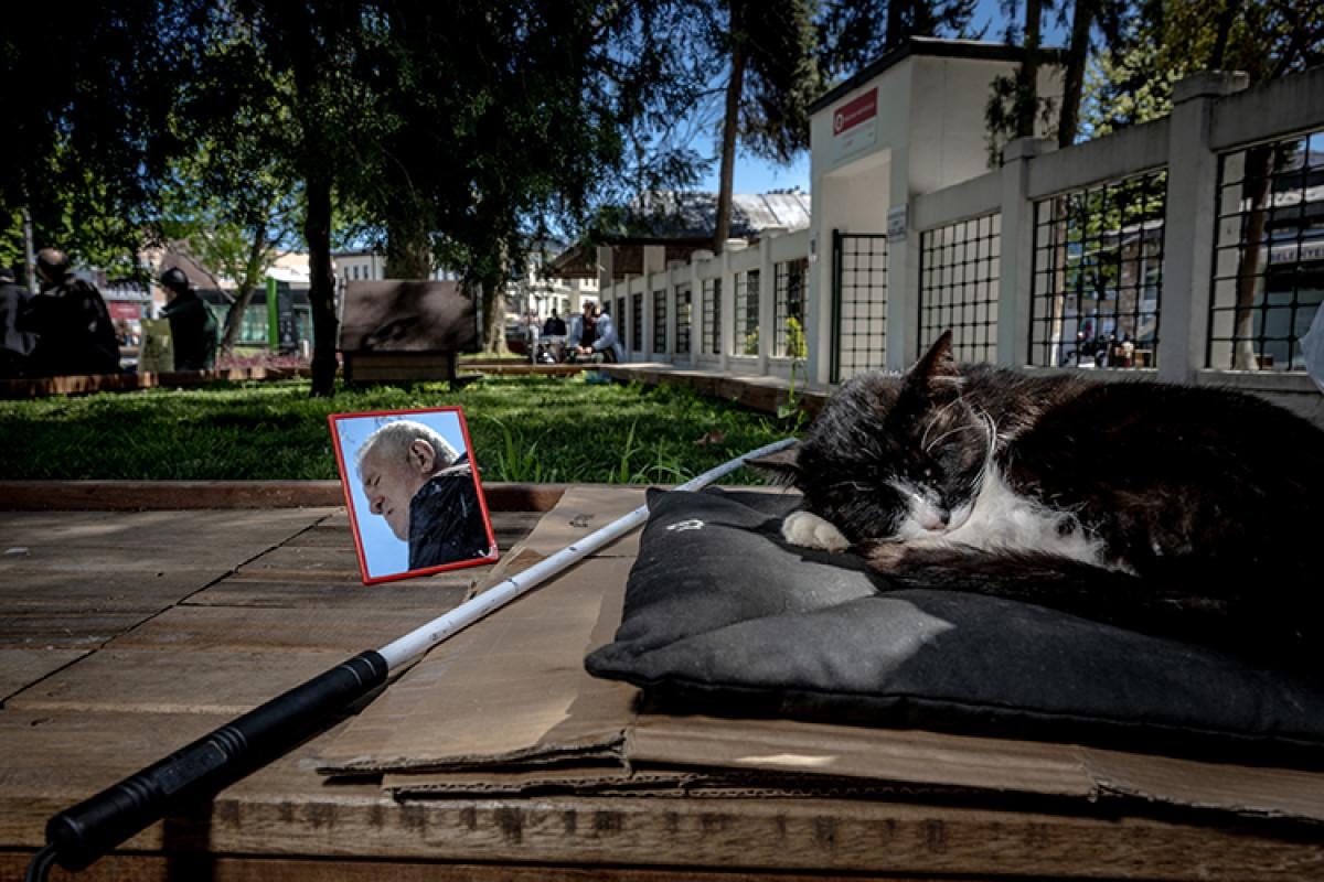 Son iki yıldır hayatının merkezine yerleşen bir yoldaşı var Sever’in: Gölge adını verdiği bir sokak kedisi. Özellikle altı ay önce eşinin vefatıyla birlikte, bu minik dost Mesut Sever’in sadece dizinin değil, kalbinin de yoldaşı oldu. Her sabah baston sesini tanıyarak koşarak yanına gelen Gölge, tezgâh kurulurken yerini alıyor, gün boyu ya dizinde ya da onun için özel olarak hazırlanan minderde oturuyor.