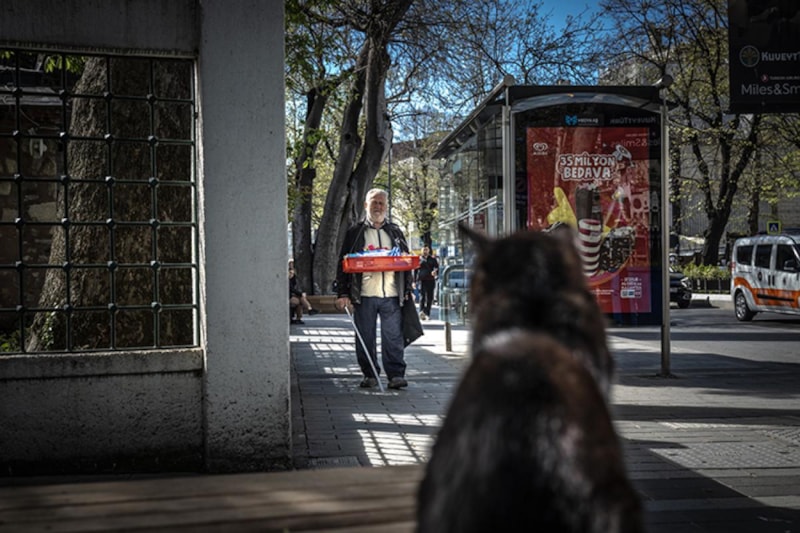 Üsküdar’ın kalabalık sokaklarında, görme engelli seyyar satıcı Mesut Sever ile bastonunun tınısını duyar duymaz yanına koşan sokak kedisi Gölge arasında, yürekleri ısıtan sessiz bir dostluk filizlendi.