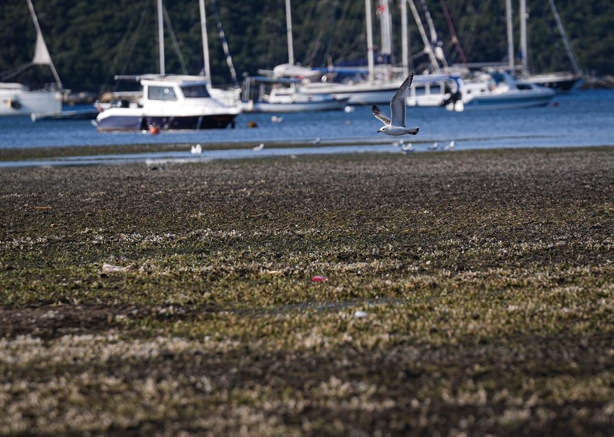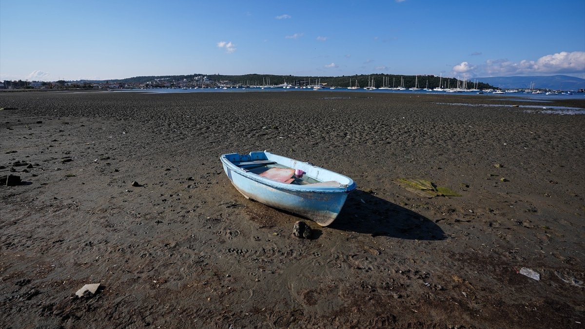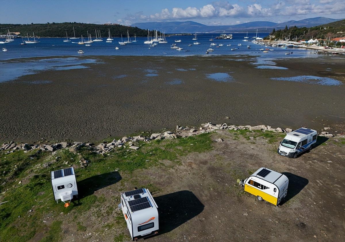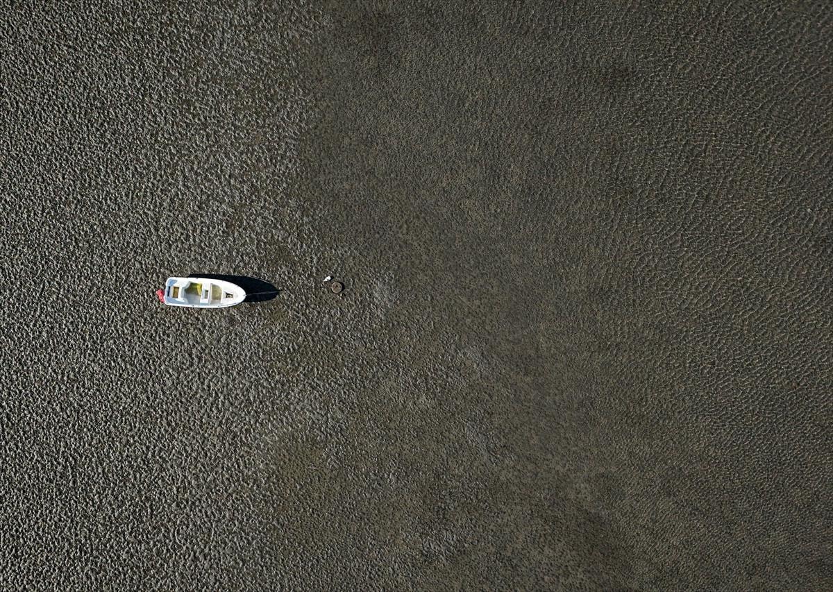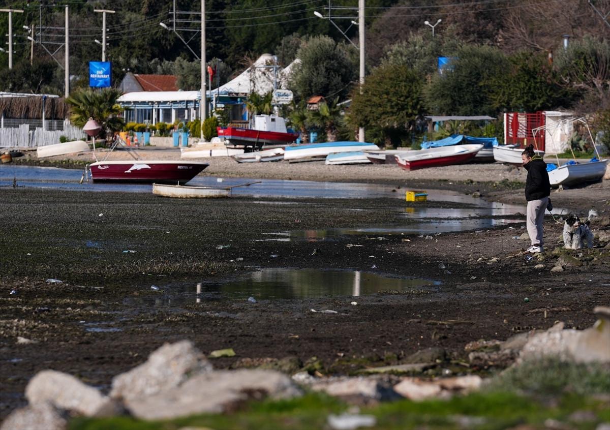 İzmir'in Seferihisar ilçesi Sığacık Mahallesi'nde deniz çekildi, tekneler karaya oturdu.