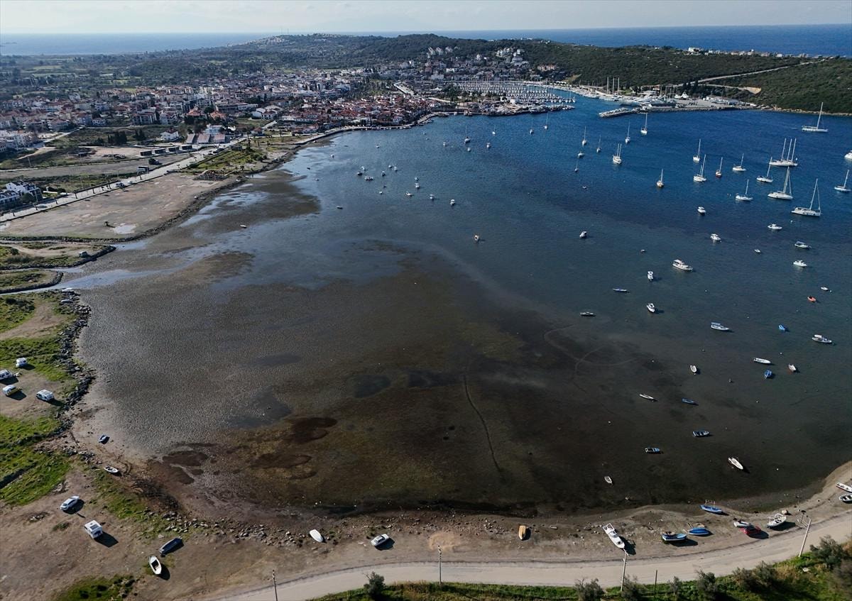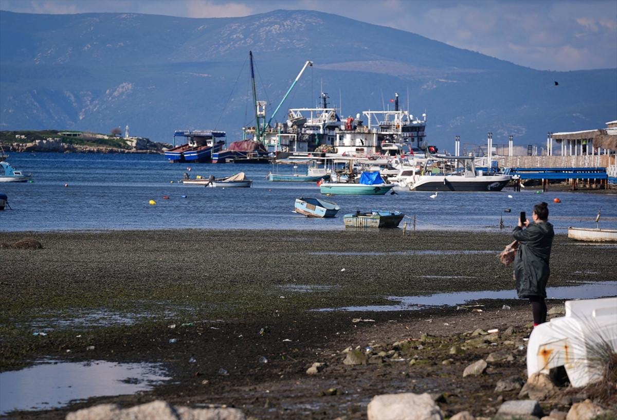 Marmara'dan itibaren su güneye doğru yığıldığı için sığ olan bütün bölgeler açığa çıkar. Çekilme önce Dikili'de başlar. Şu anda burada da su seviyesi yaklaşık olarak 40-50 santim düşmüş durumda, daha devam edecek salıya kadar 70-80 santim aşağı doğru inecek ama korkulacak bir şey yok. Normal bir doğa olayı.