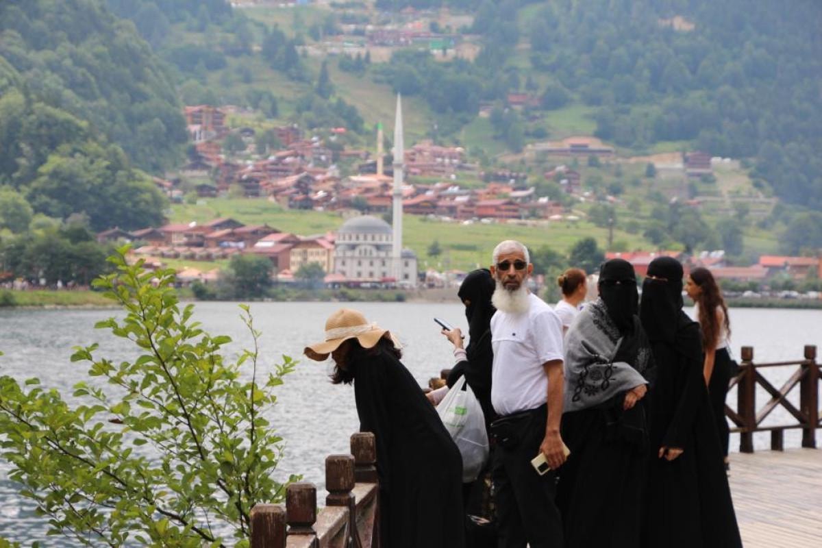 Uzungöl'de Orta Doğu'dan gelen turistlerin yoğunluğu göze çarparken bu yoğunluk hafta sonlarında yerli turistlerin de katılımıyla gözle görülür şekilde artıyor.
