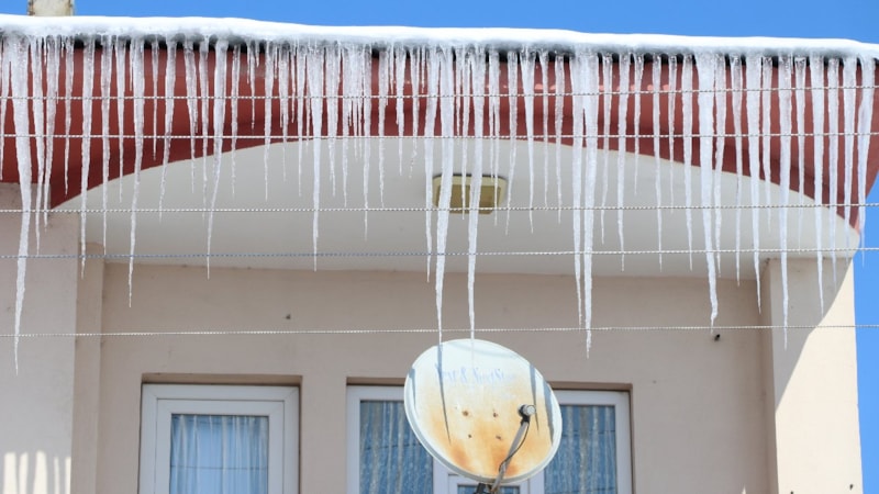 İlçede yaşayanlar araçların üzerini naylon ve brandalarla kapatırken, binaların çatılarında 1 metreyi bulan buz sarkıtları oluştu.