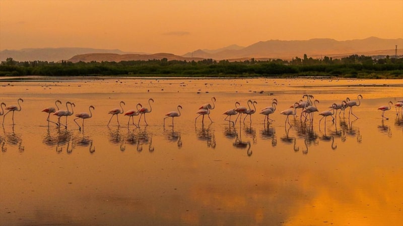 Flamingoların beslenme, dinlenme ve gün batımında Van Gölü üzerindeki toplu uçuşları güzel görüntüler oluşturuyor.