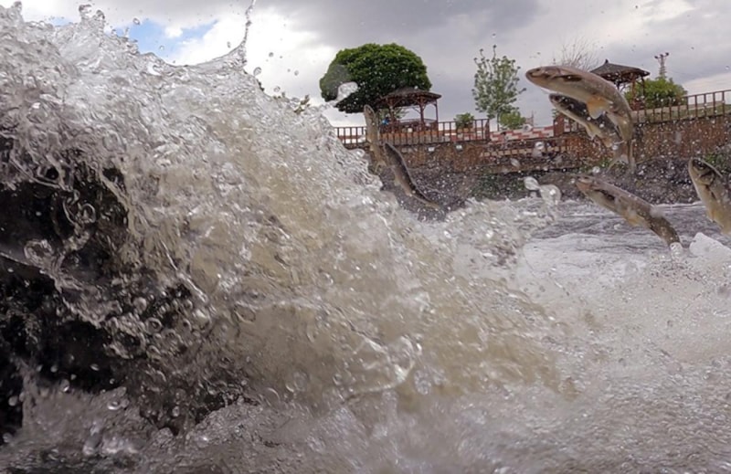 Van Gölü'nde yaşayan inci kefalinin üreme dönemlerinde suyun tersine yüzerek tatlı sulara yaptığı göç görüntülendi.