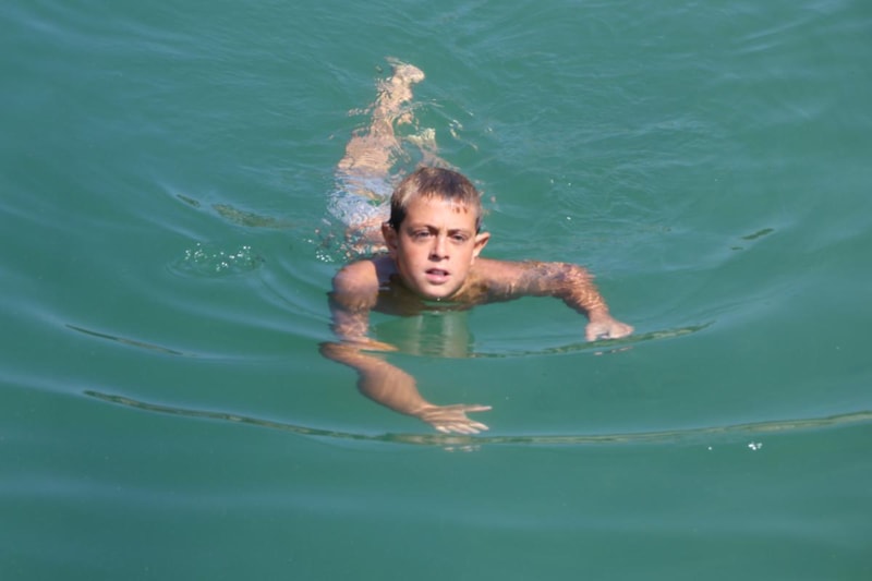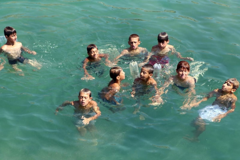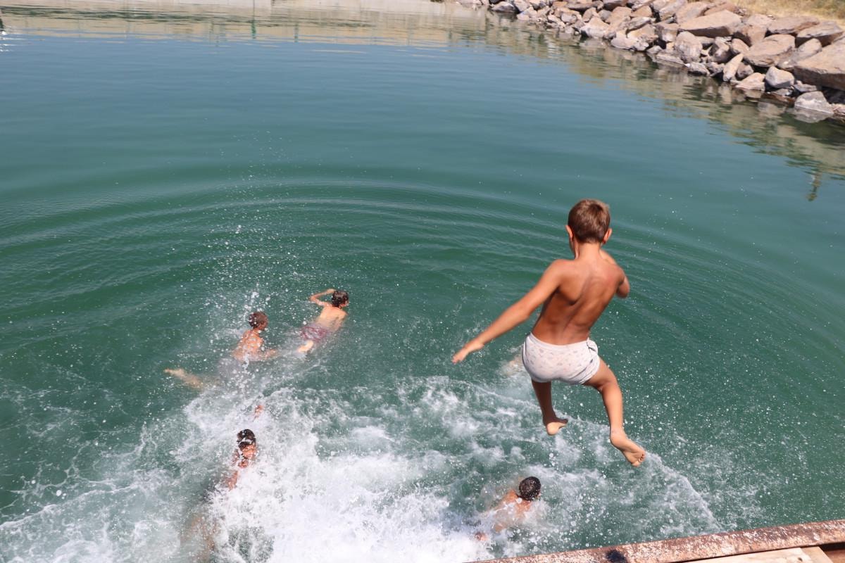 Van Gölü'nün kıyısındaki yerleşim yerlerinde yaşayan çocuklar da yaz mevsimi ile göle giriyor.