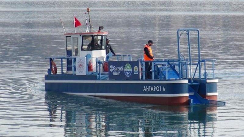 Mavi Nefes Projesi kapsamında Bitlis'in Tatvan ilçesine getirilen deniz süpürgesi ile Van Gölü'nde yüzey temizliğine başlandı.