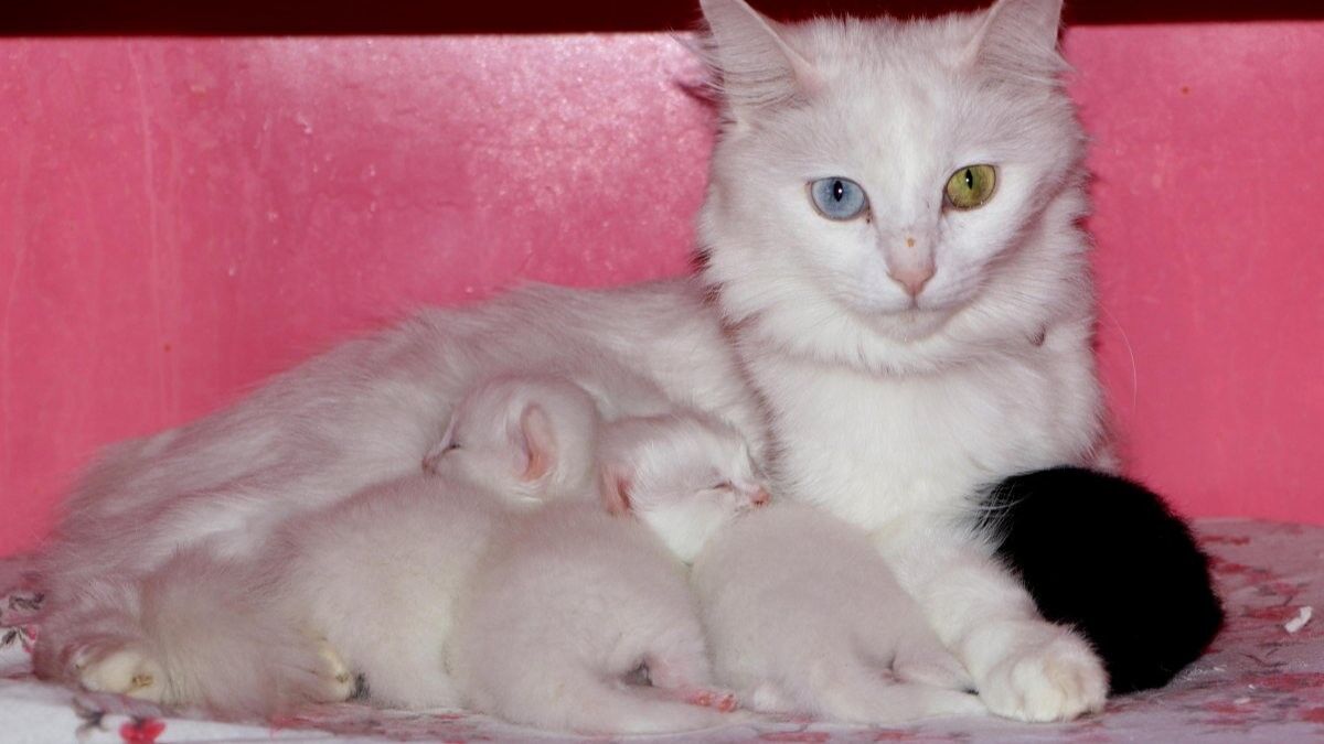 Farklı göz renkleri, bembeyaz tüyleriyle ünü ülke sınırlarını aşan ve Van Kedi Villası'nda özenle bakılan kediler, bu yılın mart ayında ilk yavrularını da doğurdu.