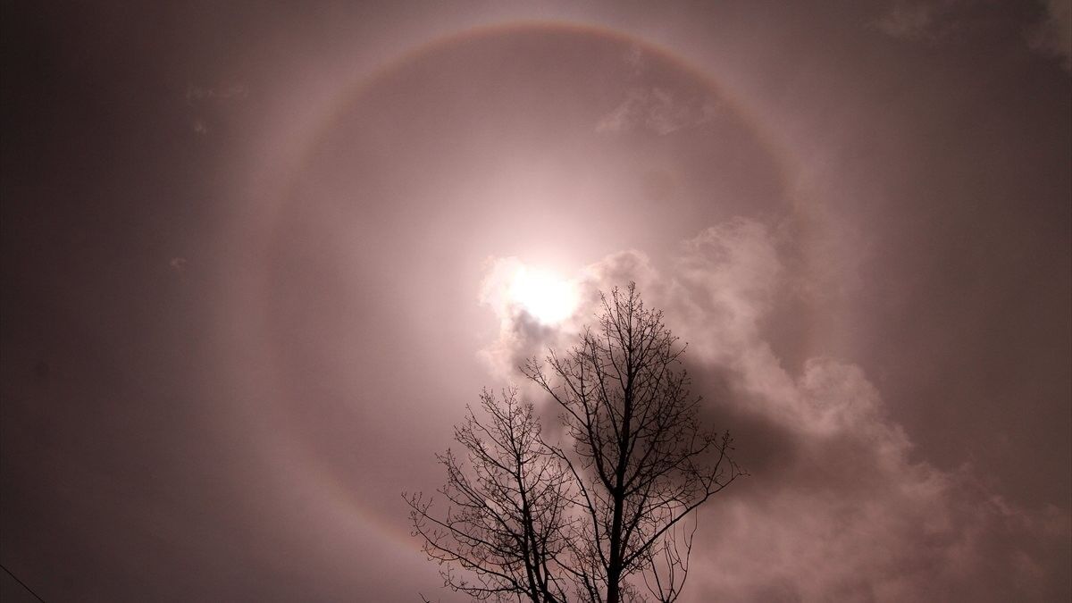 AA'nın haberine göre, güneşin etrafında gökkuşağı tonlarında oluşan halkanın, güneşten gelen ışınların buz kristallerine çarptıktan sonra kırılarak yansımasından kaynaklandığı biliniyor.
