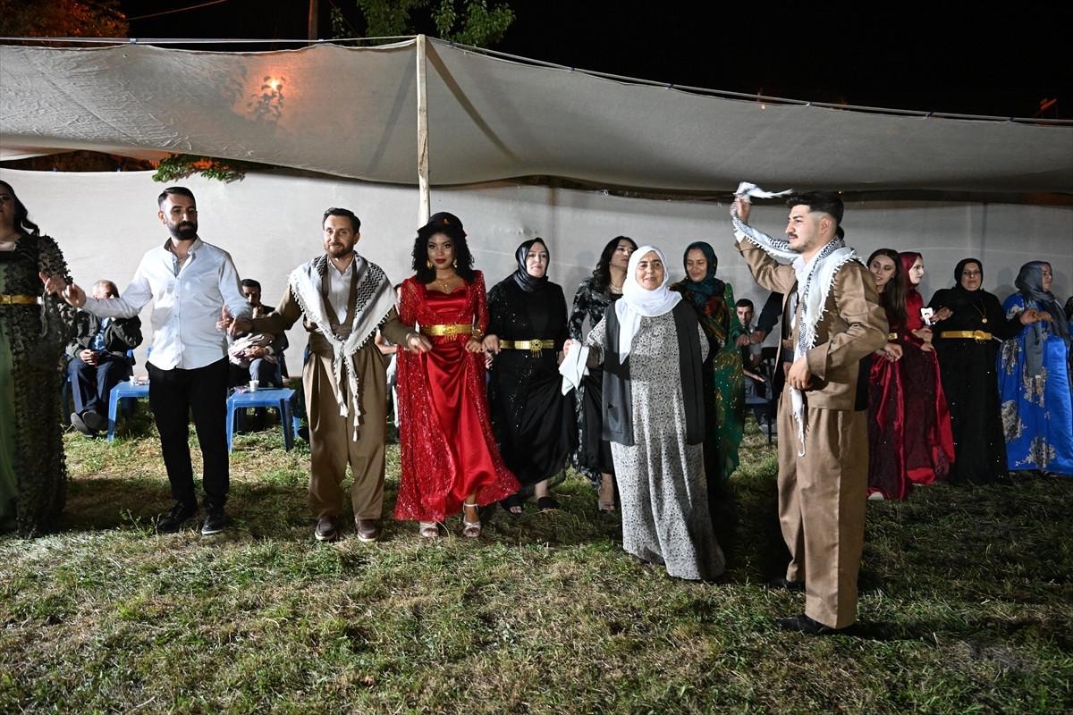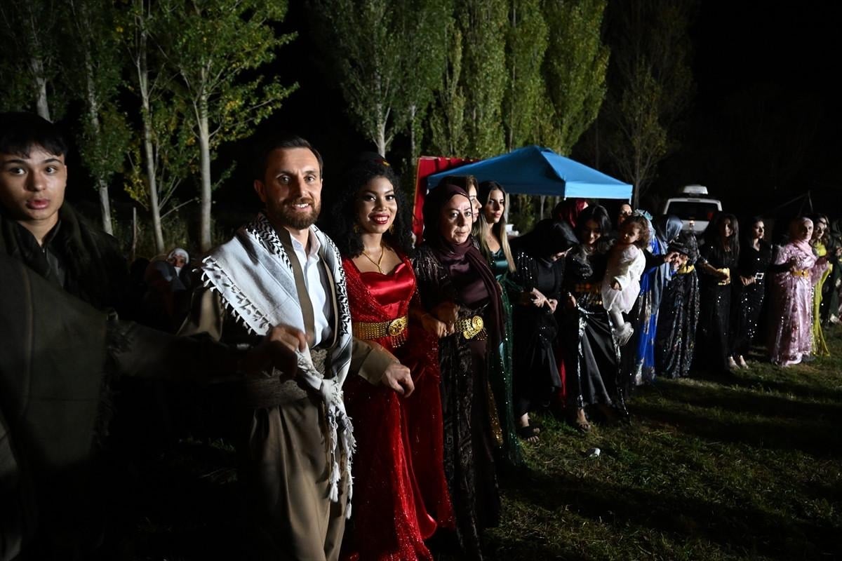 Gelin için kıl çadırının kurulduğu alanda, yöresel kıyafetler giyerek halay çeken çift, büyük mutluluk yaşadı.