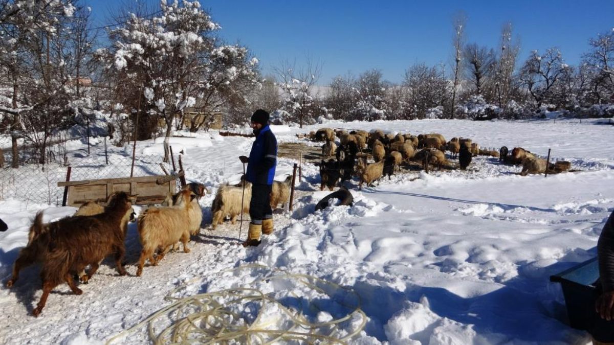 Yaklaşık 200 küçükbaş hayvanının olduğunu belirten Ökçün, “Kendimi bildim bileli bu işi yapıyorum. Hayvancılık zaten zor bir uğraştır. Kış mevsiminde bu zorluğumuz artıyor. Yeri olanlar içeride yemliyor hayvanlarını, yeri olmayanlar ise dışarıda yemliyor. Ben de bu manada sabah kalkar kalkmaz karı temizliyorum. Sonra otunu bırakırım ve saat 08.00 gibi hayvanları bırakırım.” dedi.