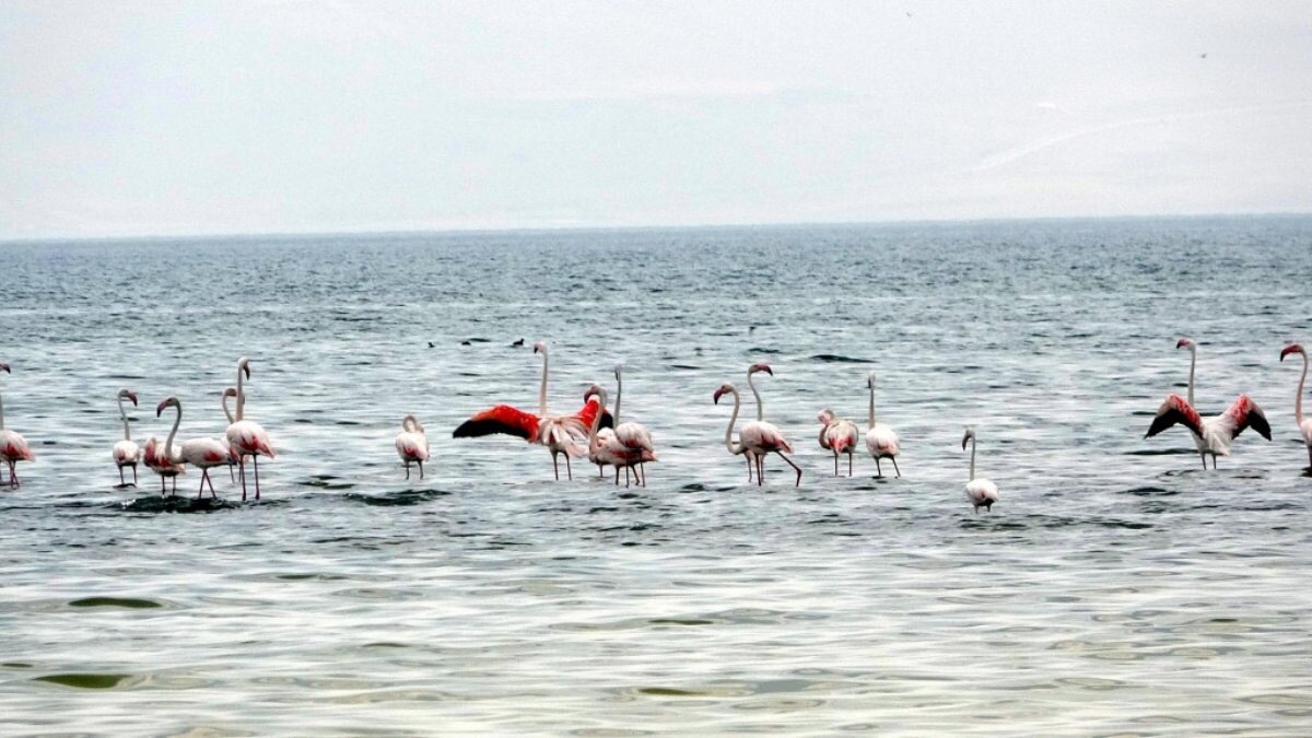 Göçmen kuşların önemli konaklama merkezlerinden Van Gölü havzası, bu yıl da binlerce flamingoya ev sahipliği yapıyor.
