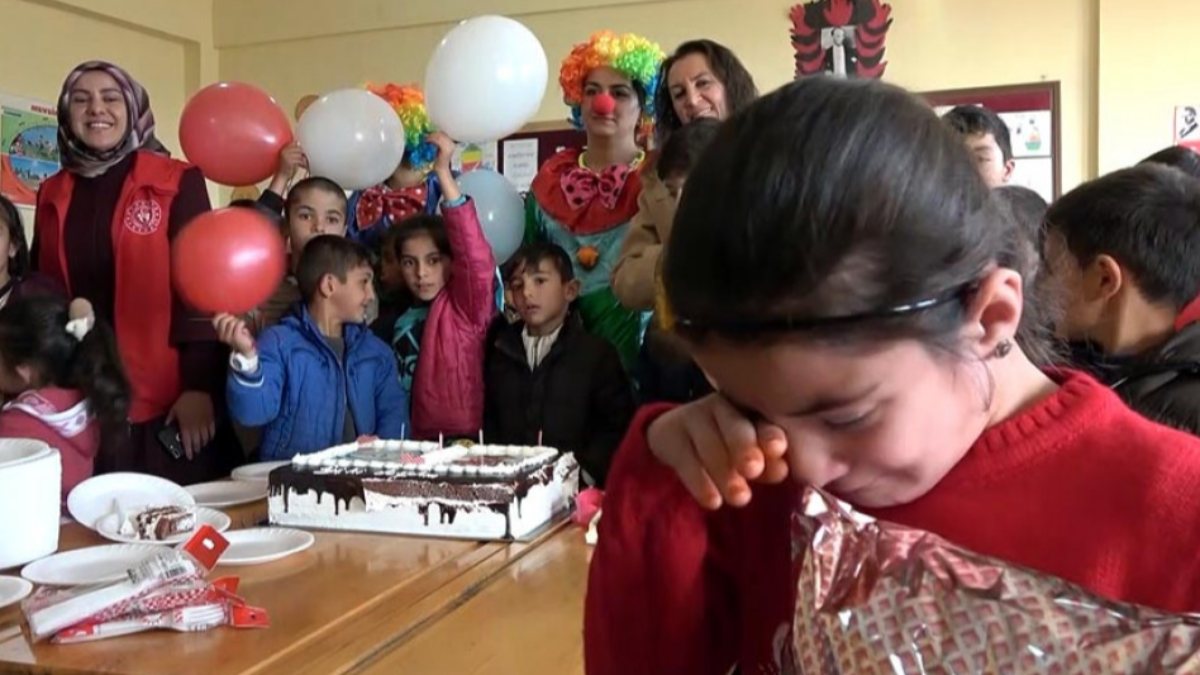 Van'da ilk kez doğum günü kutlanan Nisanur gözyaşlarına boğuldu VİDEO