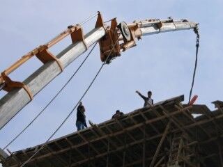 Van'ın İpekyolu ilçesi İskele Caddesi'nde yapımı süren inşaatın altıncı katında beton dökme işlemi sırasında, iş makinesinin pompası kırıldı.