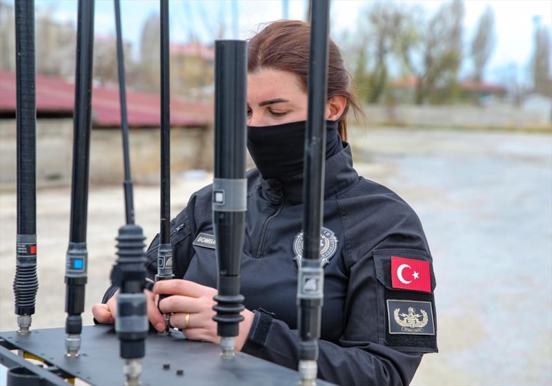 Türkiye'deki 5 kadın bomba uzmanından biri olan D.K.G'nin gerçekleştirdiği bombalı paket imha tatbikatı görüntülendi.