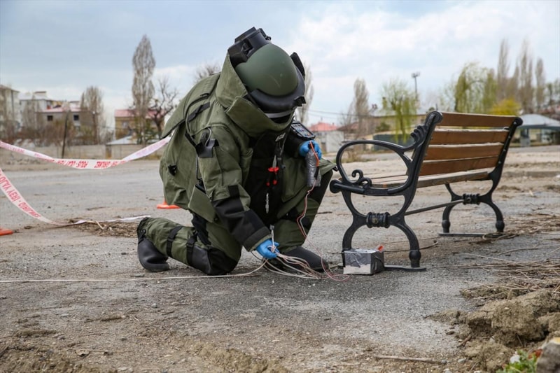 Vatandaşların güvenliği için ölümle yaşam arasındaki ince çizgide bomba düzeneklerini imha eden polis memuru, kritik müdahaleleriyle olası patlamaların ve saldırıların önlenmesine katkı sundu.