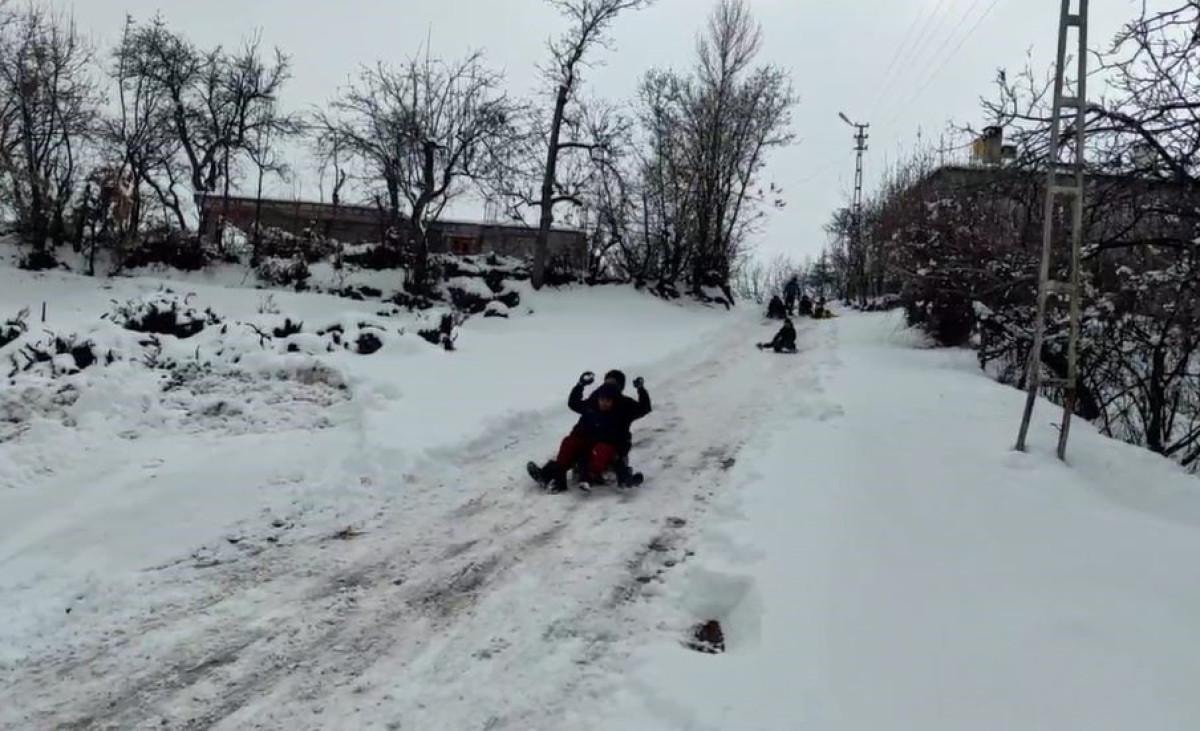 Van Gevaş’ta dün geceden beri etkili olan kar yağışı hayatı olumsuz etkilerken, ilçeye bağlı Elmalı Mahallesi’nde bir araya gelen çocuklar ise kendi imkanlarıyla yaptıkları kızaklarla kaymanın keyfini yaşadı.