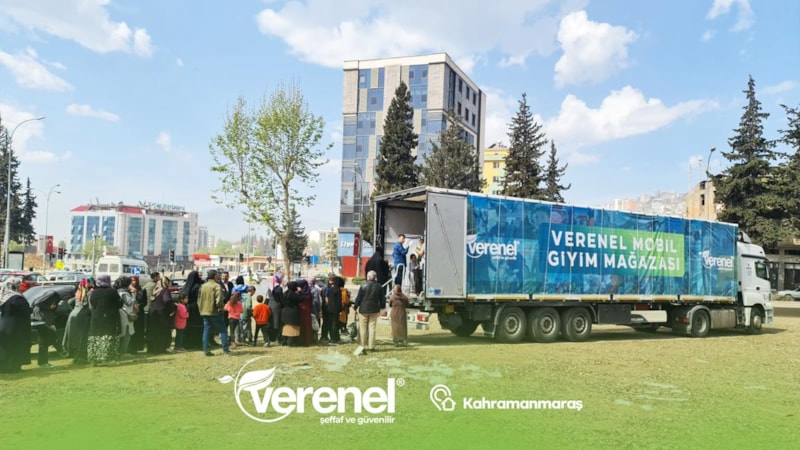 Ziyaret edilen şehirlerde yer alan tır, giyim mağazasını andırıyor. Tırı gezerek raflardaki ve askılardaki ürünleri inceleyen, ayakkabı, pantolon, gömlek ve kazak gibi ihtiyaçlarını temin eden depremzedelerle birebir ilgileniyor.
