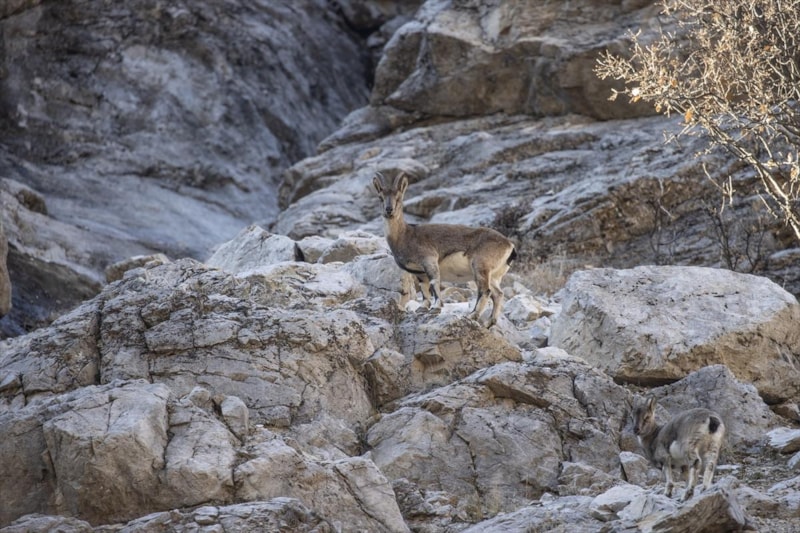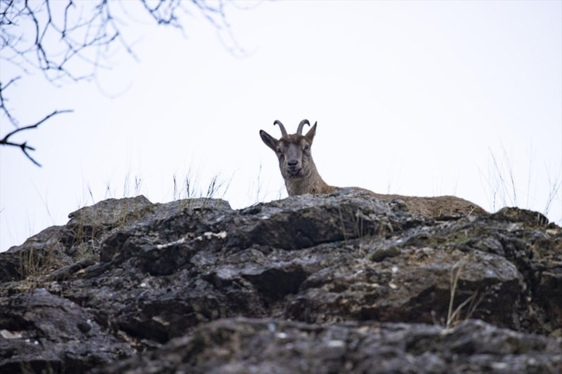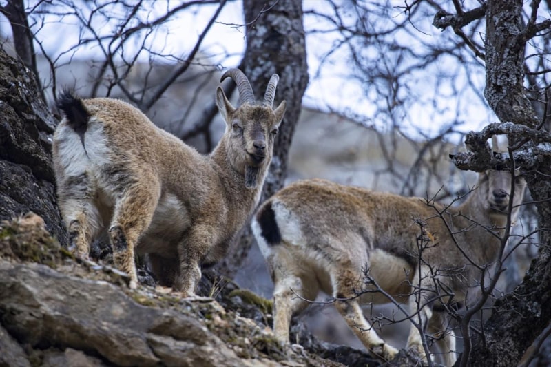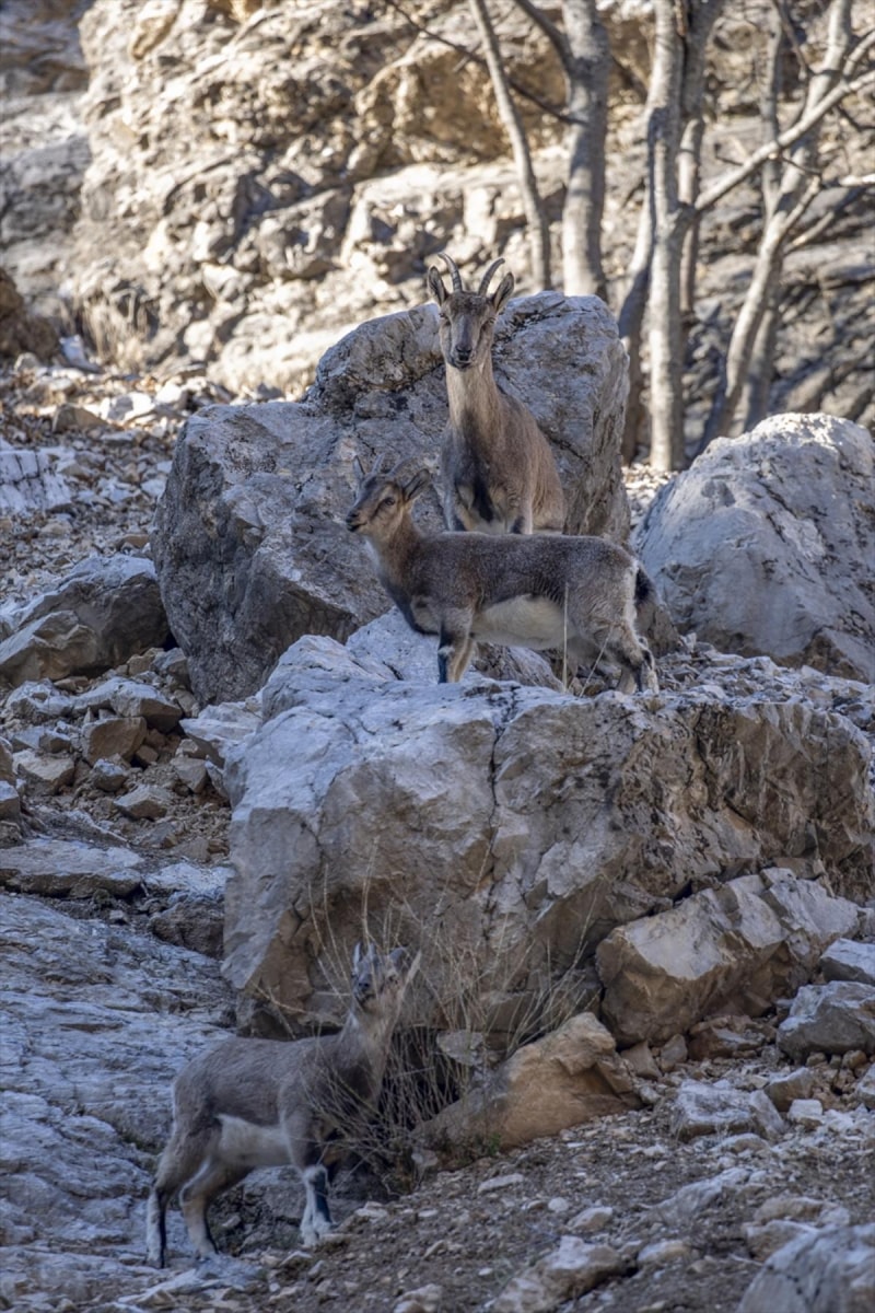 Tunceli’de yüksek kesimlerde etkisini artıran kar yağışının ardından yaban keçileri, daha ılıman alanlara yönelerek Munzur Vadisi Milli Parkı’nda görüntülendi.