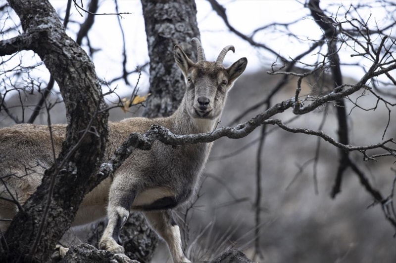 Koruma altında bulunan ve avlanması yasak olan yaban keçileri, karla kaplanan yüksek alanlardan daha alçak kesimlere yöneldi. Munzur Vadisi Milli Parkı’nı mesken tutan keçiler, vadide meşe dalları ve kuru otlarla beslenirken görüntülendi.