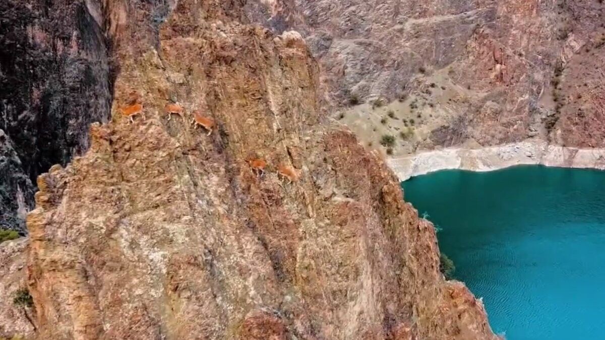 Tarım ve Orman Bakanlığı Twitter hesabından 'Yine gözümüz yükseklerde' başlığıyla yaban keçilerinin dron görüntülerini paylaşıldı.
