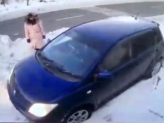 Yakutistanlı kadın üstüne gelen araçtan son anda kurtuldu ViDEO