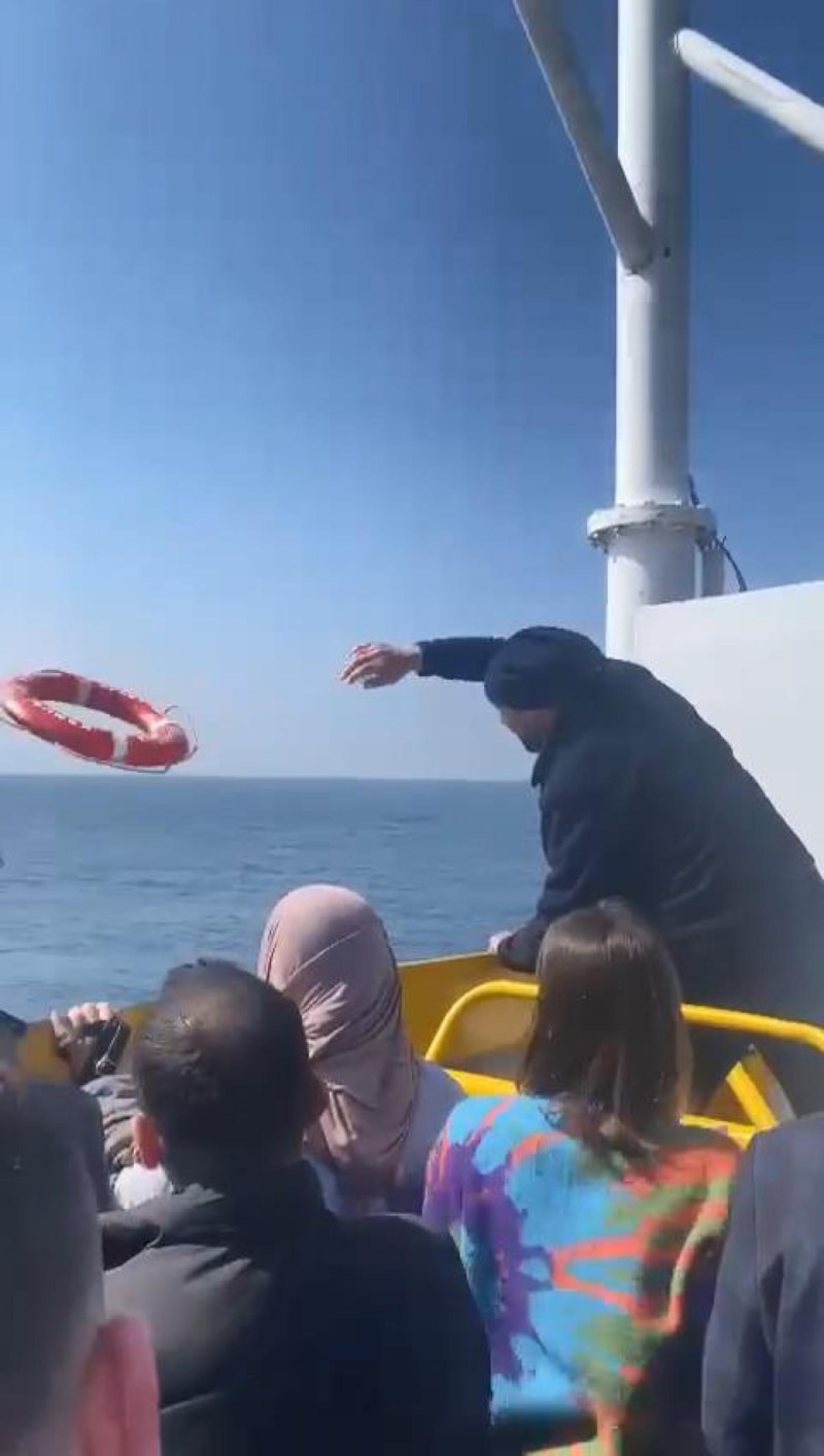 Feribottan atladı, görevliler can simidi attı