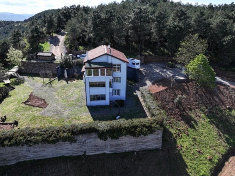 Köye yakın bir bölgede ormanlık alanın zirvesinde bulunan 125 metrekare alana sahip 9 odalı ev, konumuyla ilgi görüyor.
