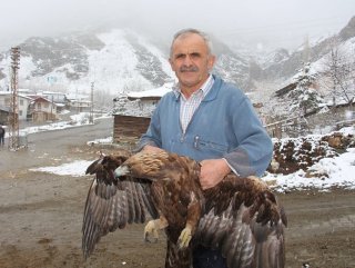 Oltu ilçesindeki evinde bulunan samanlıkta kasanın içerisinde iki gün yaralı kartala bakan hayırsever vatandaş Nazım Elibol, insani görevini yerine getirdikten sonra Milli Parklar Müdürlüğü yetkililerini arayarak kartalı almalarını istedi.