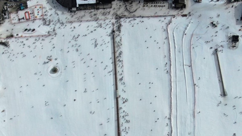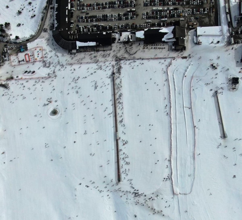 Pist alanında yaralanan ve mahsur kalan vatandaşlar, kar motorları ile bulundukları konumdan alınarak sağlık ekiplerine teslim edildi.