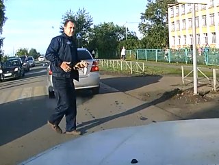 Rusya'nın Ugra şehrinde bir sürücünün dikkatsizliği, neredeyse bir kedinin ölümüne neden oluyordu.