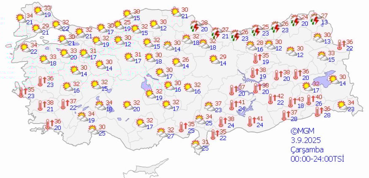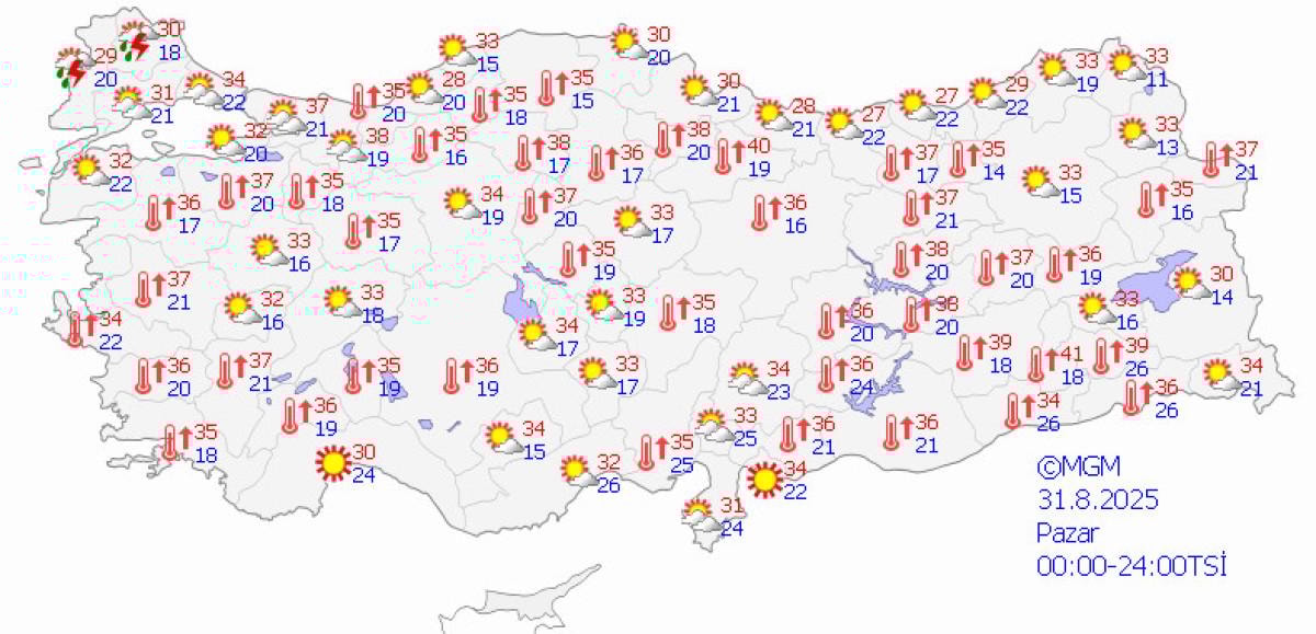 - Meteoroloji Genel Müdürlüğü, sıcaklıkların pazar günü pik yapacağını ve salı gününe kadar süreceğini bildirdi.