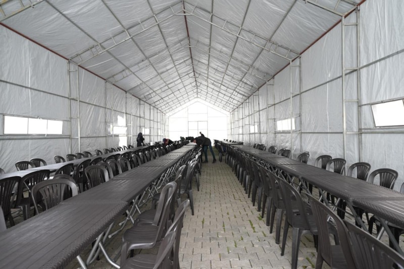Caminin ön avlusuna sosyal etkinliklerin düzenleneceği 1000 metrekarelik çadır, kadın ve erkek mescit alanı, arka avlusuna da iftar için 2 adet çadır olmak üzere toplamda 2500 metrekareden oluşan bir alan kuruldu.