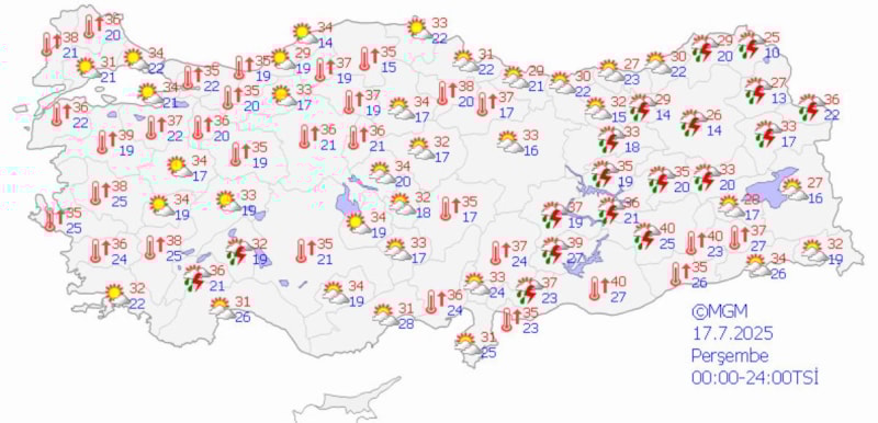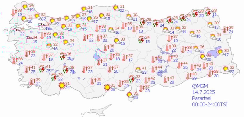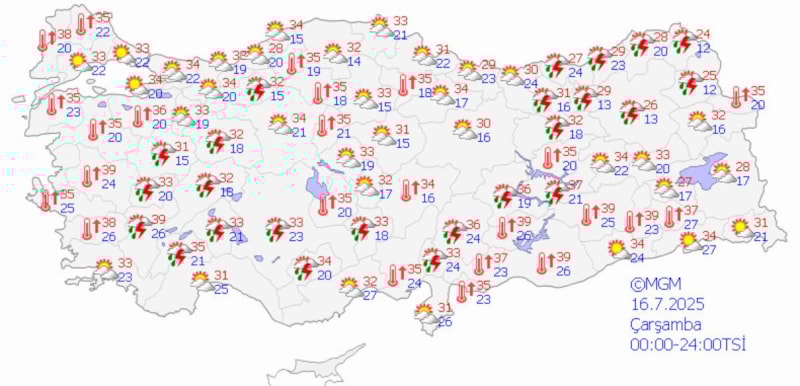 Çelik, sıcaklıkların Ankara'da 35 ila 37, İstanbul'da 32 ila 33, İzmir'de ise 34 ila 36 derece arasında seyredeceğini söyledi.