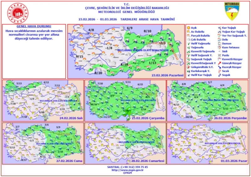 Meteoroloji Genel Müdürlüğü, yeni hava durumu raporunu yayınladı.