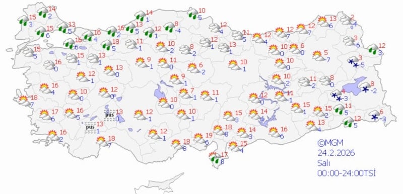 Türkiye genelinde parçalı ve çok bulutlu hava hakim olacak.