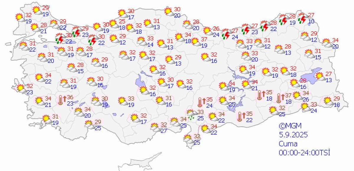 - Ankara, İzmir ve İstanbul'da sıcaklıklar sırasıyla 34, 33 ve 31 dereceye ulaşacak.